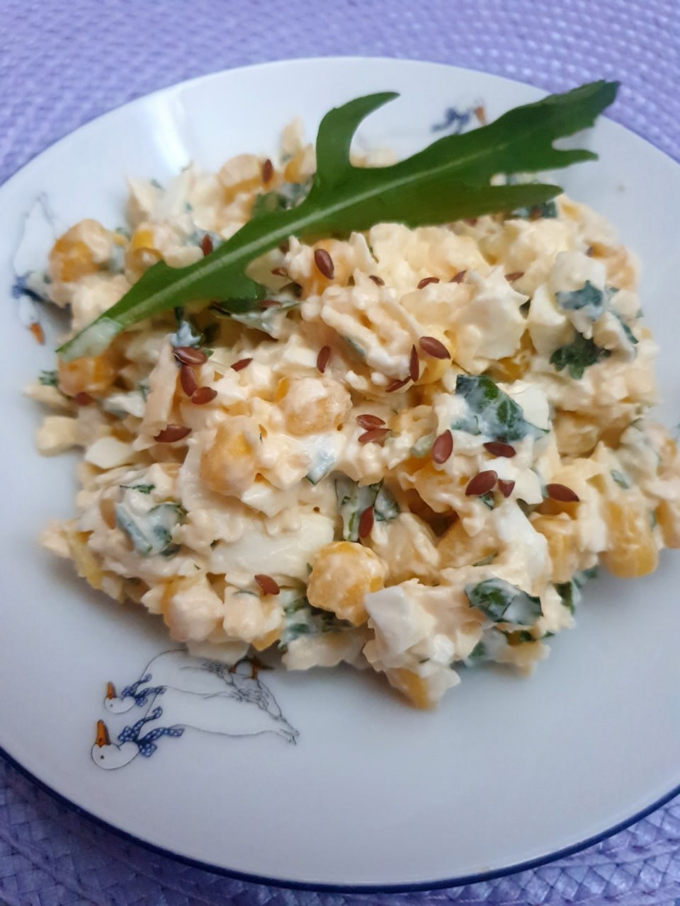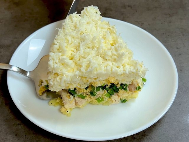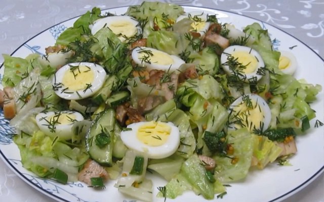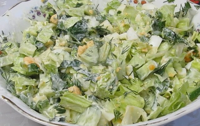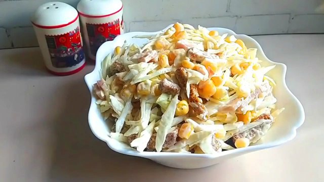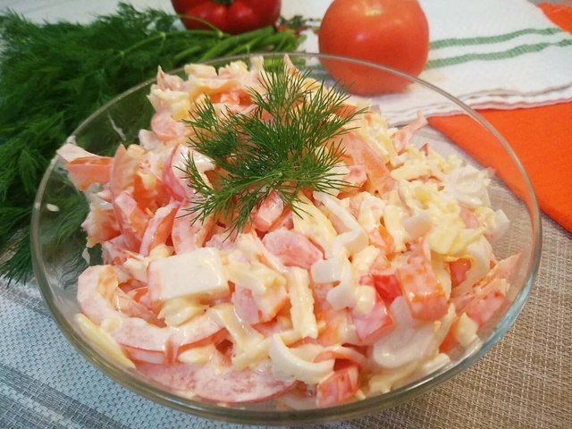 1. Из данного количества продуктов получится салат для небольшого салатника примерно на 3-4 человек.