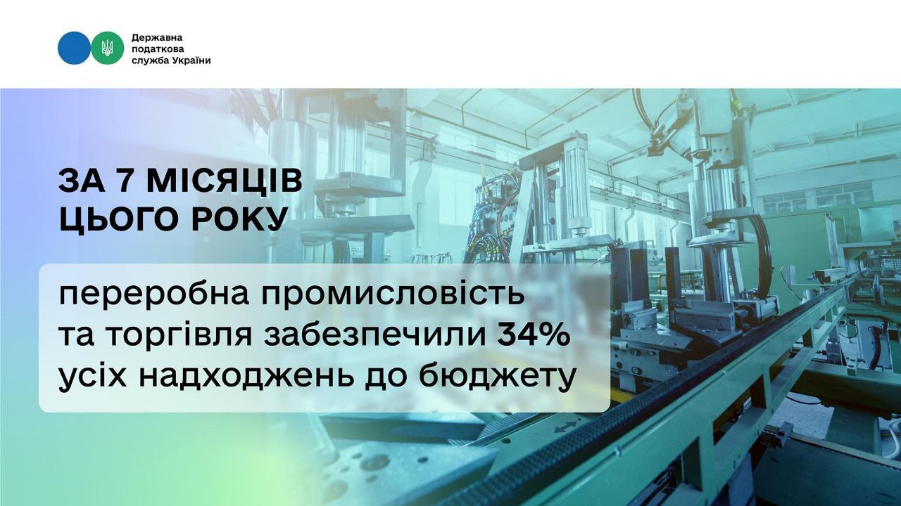 З початку року переробна промисловість та торгівля тримають лідерство у наповненні бюджету. Разом вони забезпечили майже 34 % усіх надходжень до зведеного бюджету країни. Про це на своїй сторінці у Facebook повідомила в. о. Голови Державної податкової служби України Леся Карнаух.