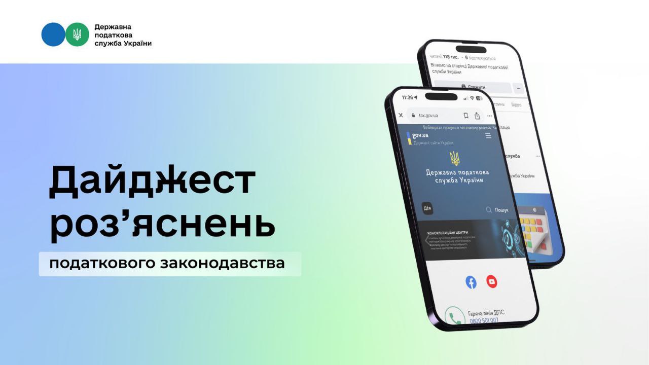 🔵🟢 Державна податкова служба України надає дайджест публікацій з роз’ясненнями податкового законодавства, які були розміщені на вебпорталі ДПС протягом тижня.