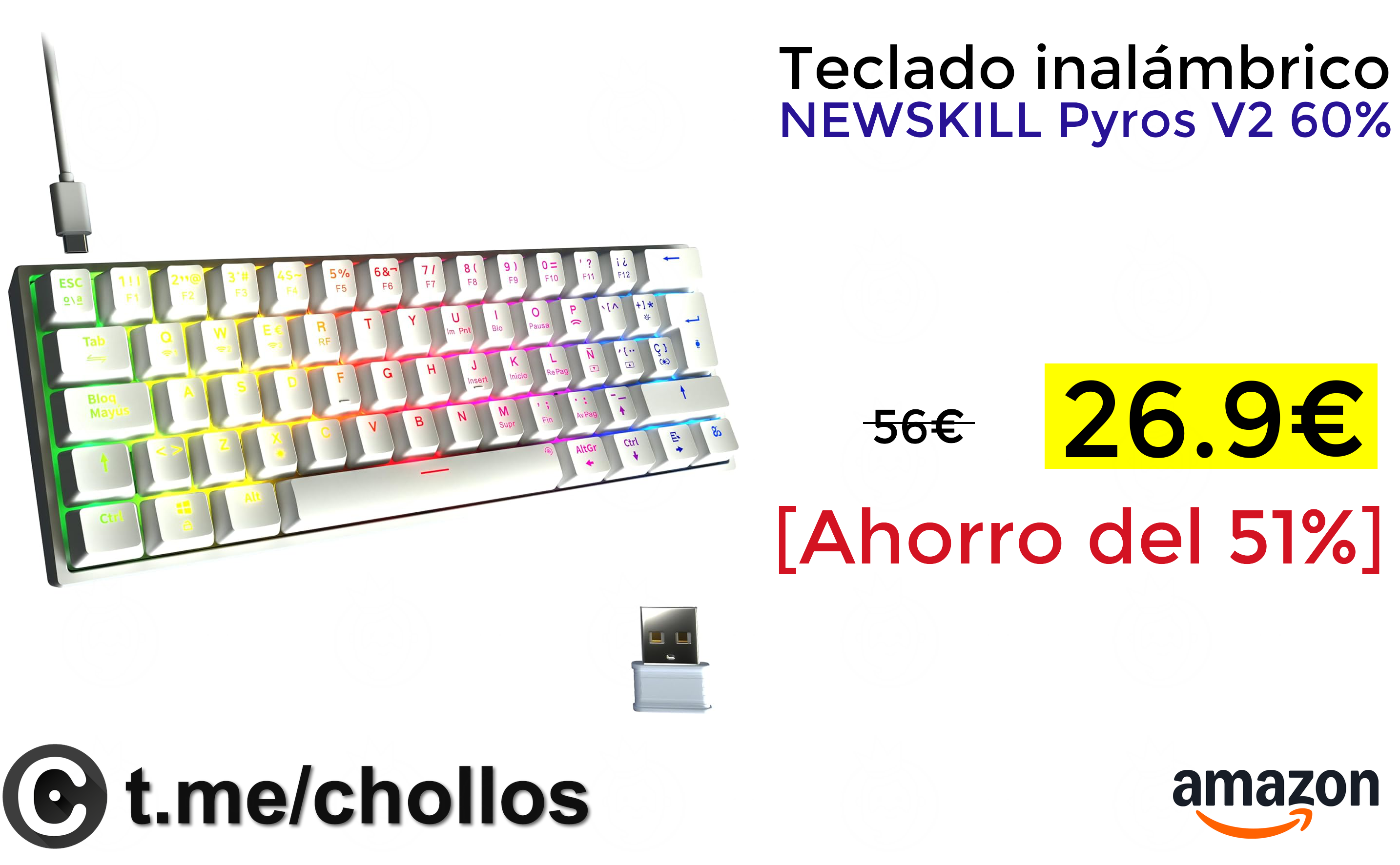 🔹Teclado inalámbrico NEWSKILL Pyros V2 60% solo 26.9€❗️💥 (PVP: +56€)