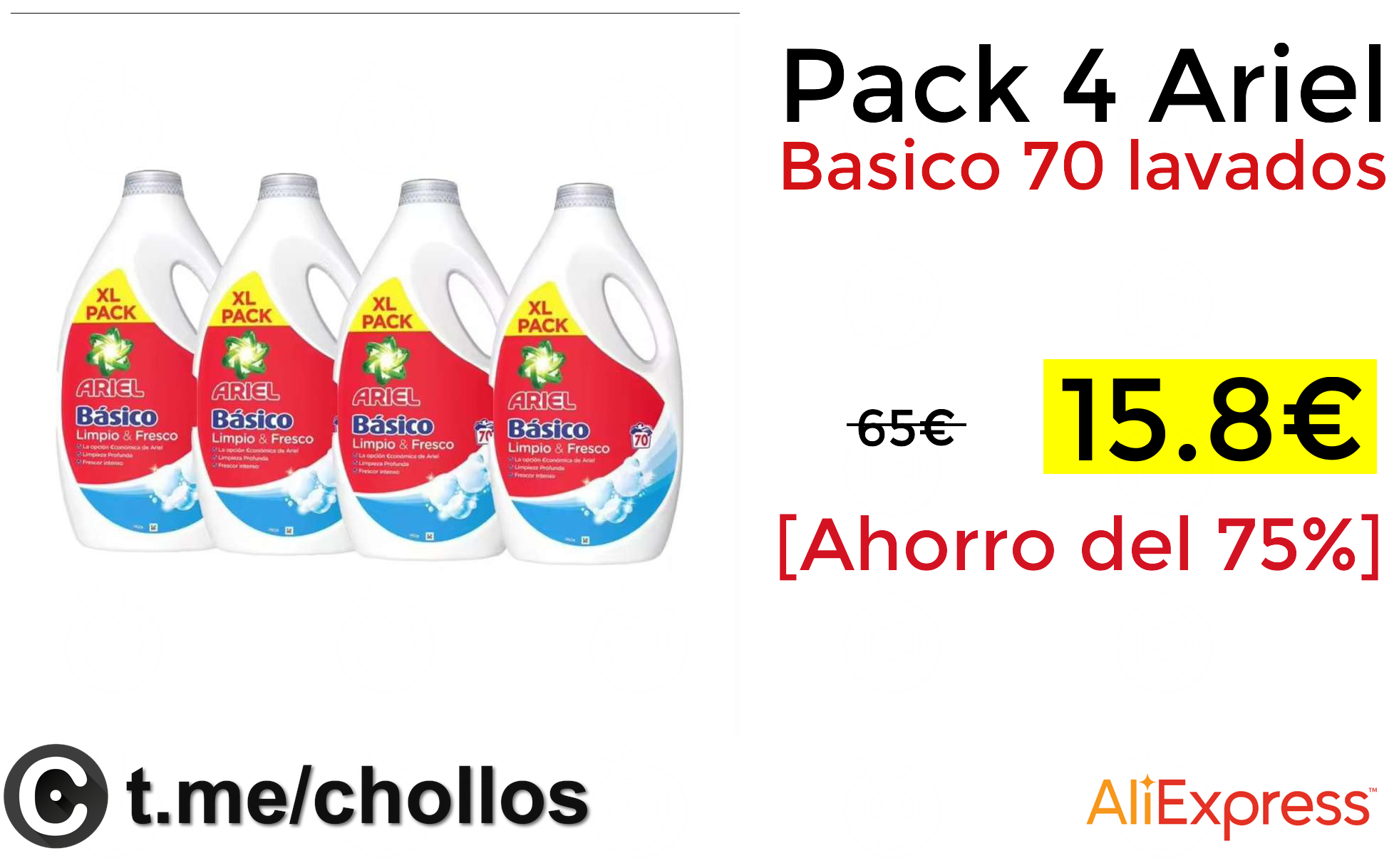 🔹Pack 4 Ariel Basico 70 lavados solo 15.8€❗️💥 (PVP: +65€)