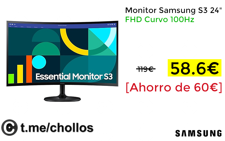 🔹Monitor Samsung S3 24" FHD Curvo 100Hz solo 58.6€❗️💥 (PVP: +119€)