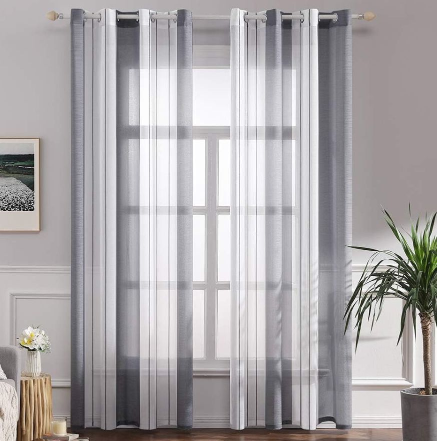 😀 Pack 2 Pzas MIULEE Cortinas Salón Modernas con Rayas Blanco y Gris, con Ojales, Translucidas Visillos para Ventanas, A140xL245cm. #Amazon