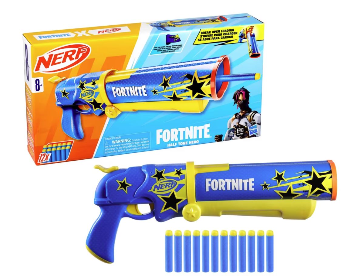 ✨ Lanzador inspirado en el famoso videojuego, capacidad para 6 dardos y sistema de recarga manual, incluye 12 dardos de espuma en tonos azul y amarillo, compatibles con otros lanzadores Nerf Fortnite y Nerf Elite