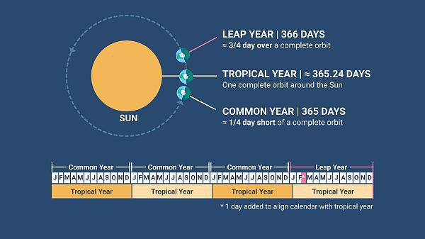 The solar year is not exactly 365 days. It is 365.24219 days. That means it is almost a quarter of a day longer than our standard 365 day calendar. Over time, that adds up. After four years, the calendar would be off by almost a full day. After 120 years, the calendar would be off by a month. Since one of the primary uses of a calendar is to help people know when to plant their crops, that ever increasing error is problematic. That’s why we have leap years - to correct for that error.