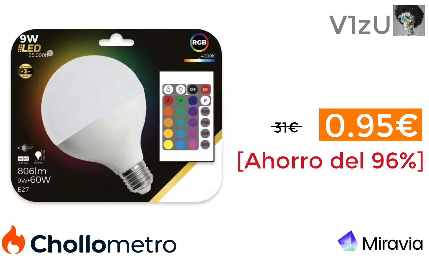 🔹Pack 5 bombillas LED RGBW con mando solo 0.95€❗️🔥 (PVP: +31€)