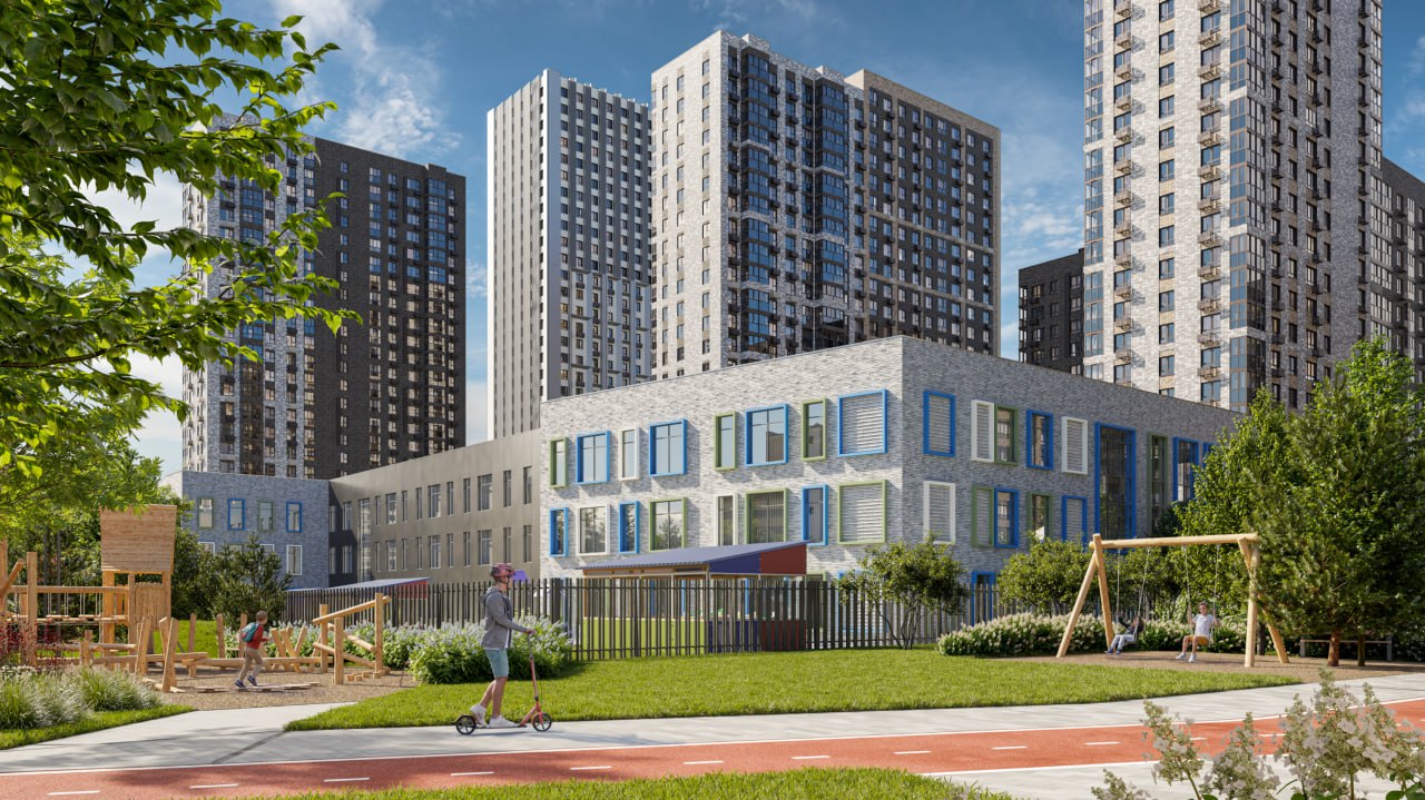 ▪️ Инфраструктура: школа на 800 учеников, детсад на 350 мест, поликлиника, ФОК с бассейном, офисный центр, коммерция на первых этажах.