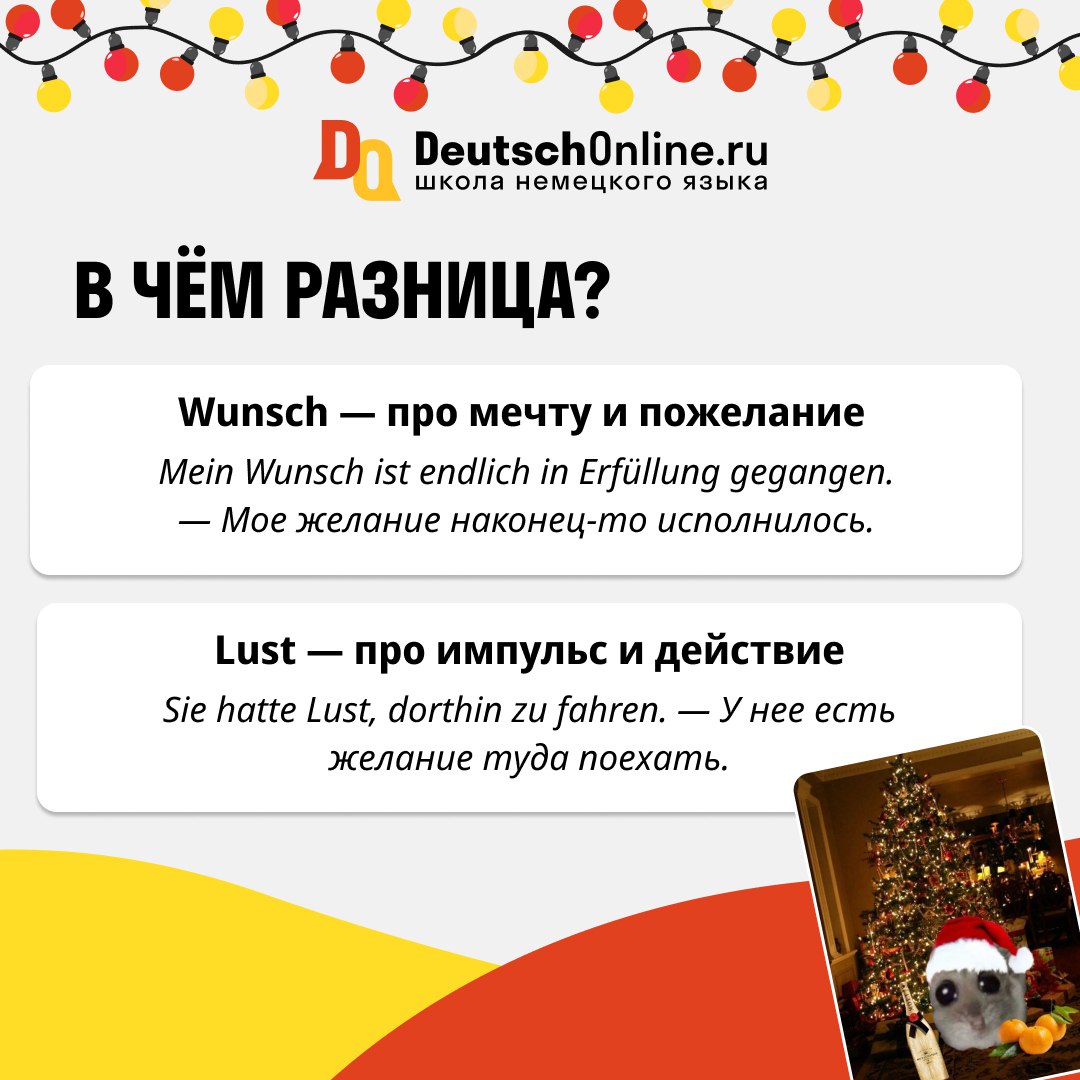 💡 Коротко: Wunsch — про мечту и пожелание. Lust — про импульс и действие.Сохраняйте, чтобы не путаться 📌 -70% на курс для продолжения обучения