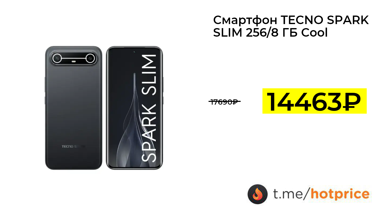 🔹 Смартфон TECNO SPARK SLIM 256/8 ГБ Cool Black (с ВБ кошельком) за 14463₽ ❗️ (везде: 17690+₽)