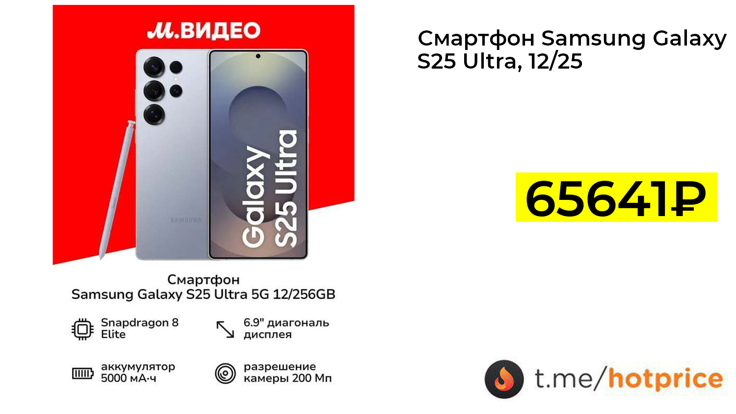 🔹 Смартфон Samsung Galaxy S25 Ultra, 12/256 ГБ, CAU (с картой OZON) за 65641₽ ❗️