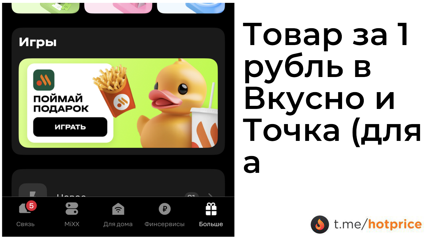 🔹 Товар за 1 рубль в Вкусно и Точка (для абонентов Т2) ❗️