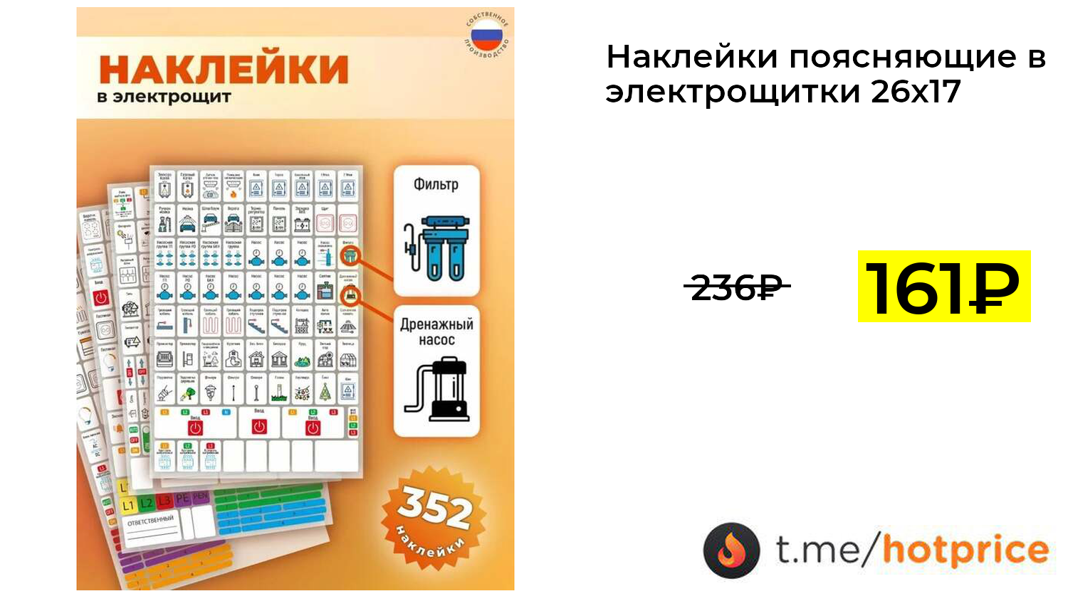 🔹 Наклейки поясняющие в электрощитки 26х17 мм, 352 шт., русский язык (с Озон картой) за 161₽ ❗️ (везде: 236+₽)