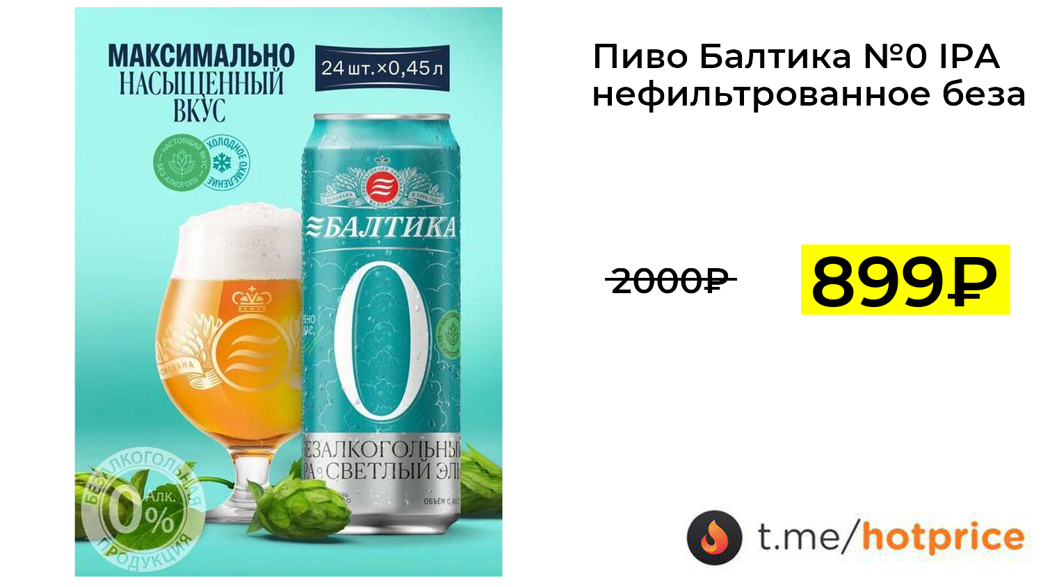 🔹 Пиво Балтика №0 IPA нефильтрованное безалкогольное, 24х0.45 л (с картой OZON) за 899₽ ❗️ (везде: 2000+₽)