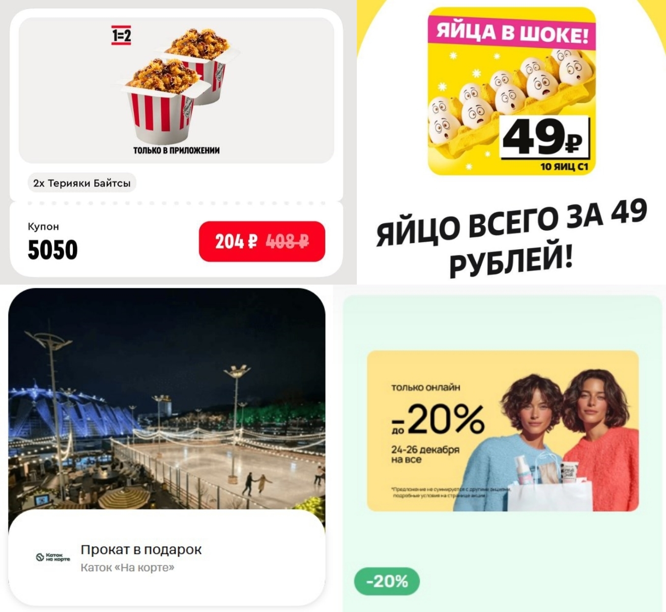 Здесь можно заказать готовую еду, заморозку, сладости и сезонные фрукты по выгодным ценам. Круто, что скидки суммируются с промокодами👇