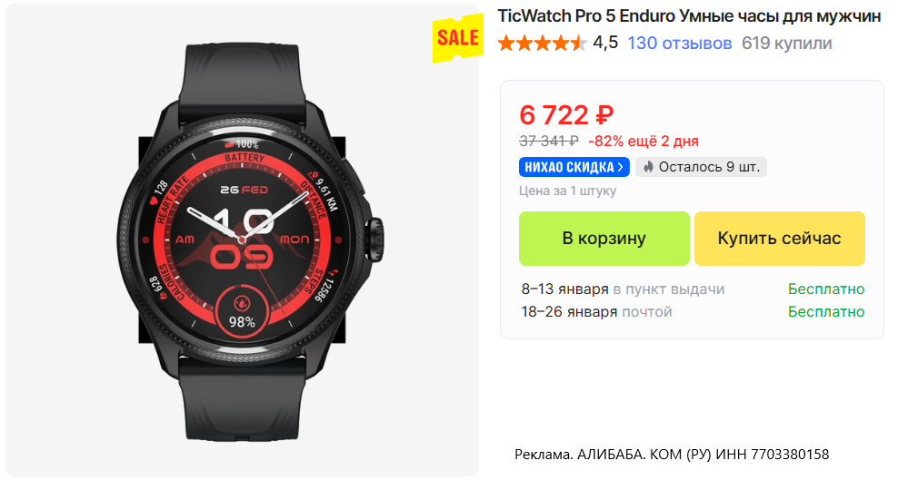 • Умные часы TicWatch Pro 5 Enduro за 6722₽. OLED дисплей 1.43", процессор Snapdragon W5+ Gen1, множество датчиков для мониторинга, до 80 ч работы от аккумулятора на 628 мАч.