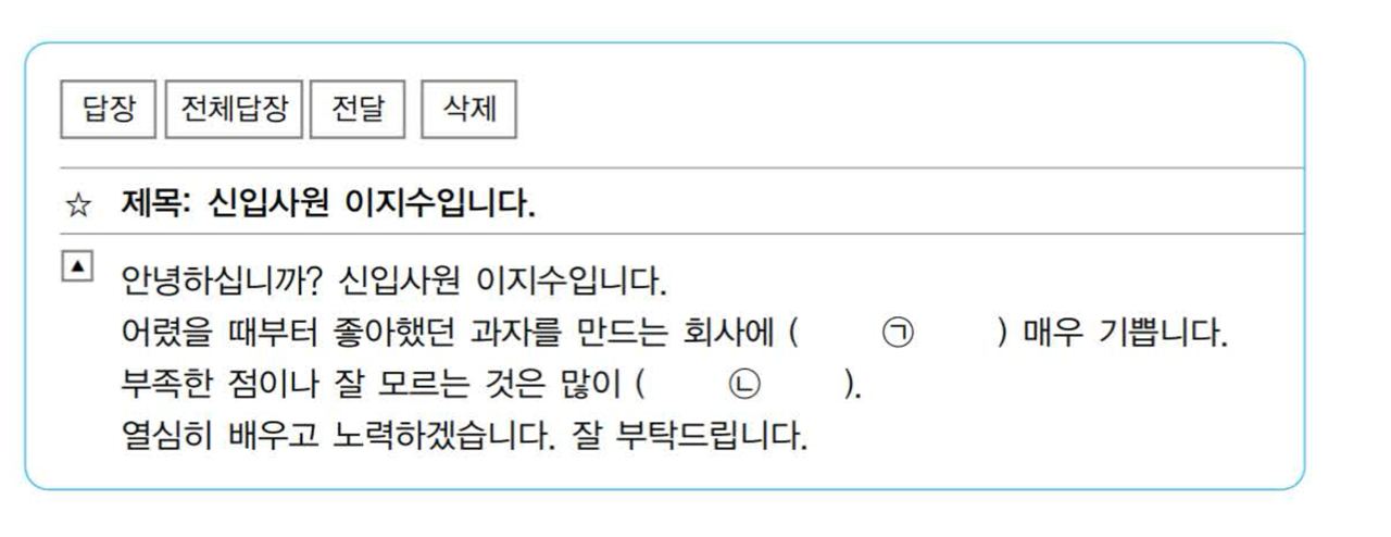 - (ㄱ) 입사하게 되어서 / (ㄴ) 가르쳐 주십시오