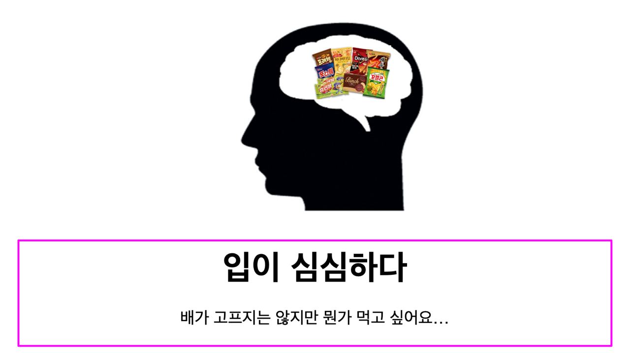 배가 고프지는 않지만 뭔가를 먹고 싶을 때가 있지요? Бывает такое, когда вы не голодны, но хотите что-нибудь съесть? Например, сладости, чипсы, печенье или фрукты. Такое чувство можно выразить фразой '입이 심심하다'.