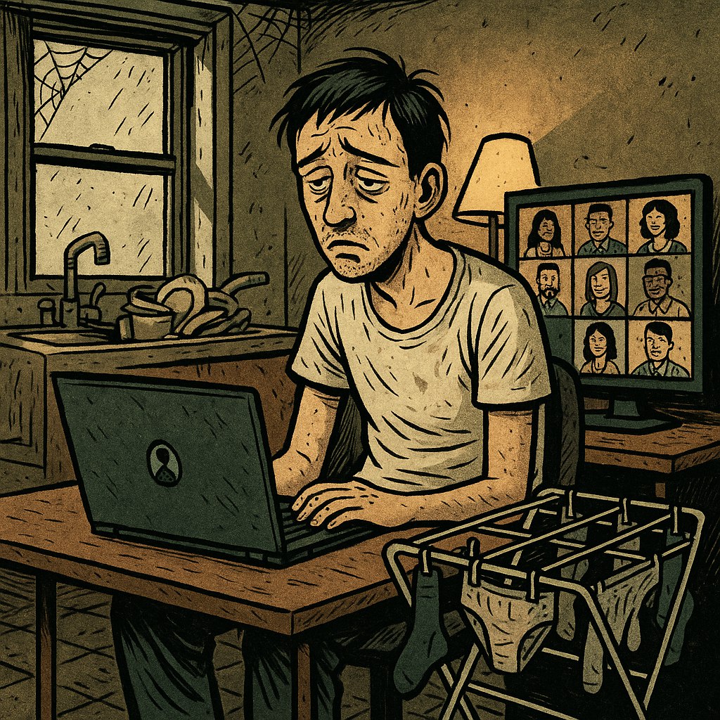 Удаленщик, на созвонах сидящий перед компом в пиджаке, галстуке и трусах, знай: однажды ты забудешься и встанешь.