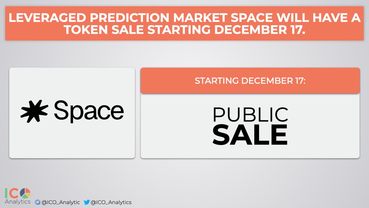 Leveraged Prediction Market Space will have a public token sale round starting December 17. The sale will go live at 6:00 PM (UTC). Sale format: auction. Floor: $2.5M raise at $50M FDV. Ceiling: $99M FDV. Vesting: 100% at TGE.