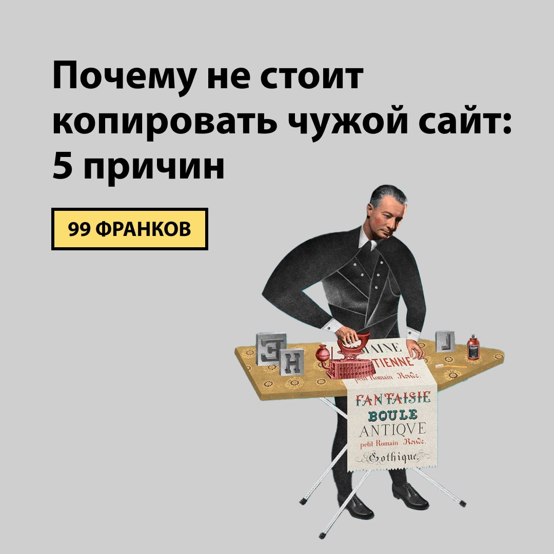 Конкурент, у которого вы скопировали сайт, название, дизайн или любое другое решение, может доставить немало проблем. Особенно если у него есть права на него – например, если дизайн авторский, и есть подтверждающий это договор с исполнителем. Дело может дойти до суда, так что оно того не стоит.
