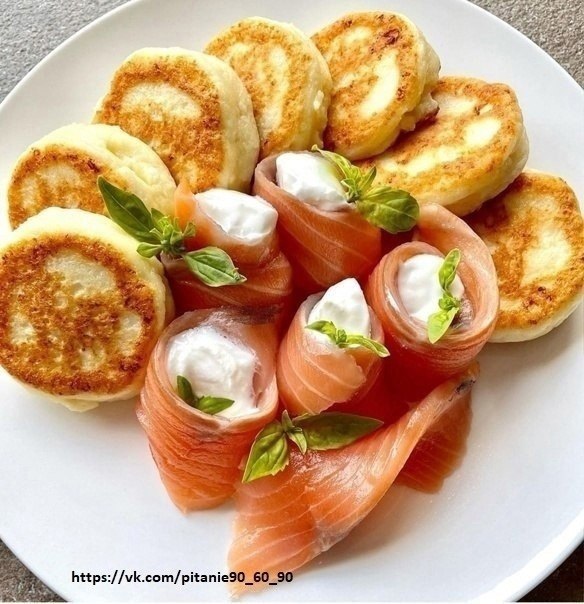 Соленые сырники вкусно сочетаются с семгой , сметаной и базиликом.