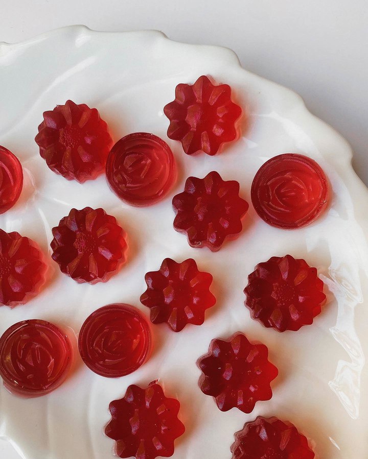 🔸К соку добавляем желатин, даём ему набухнуть, затем добавляем подсластитель или сахар. Нагреваем на плите, постоянно помешивая до полного растворения, но не кипятим!
