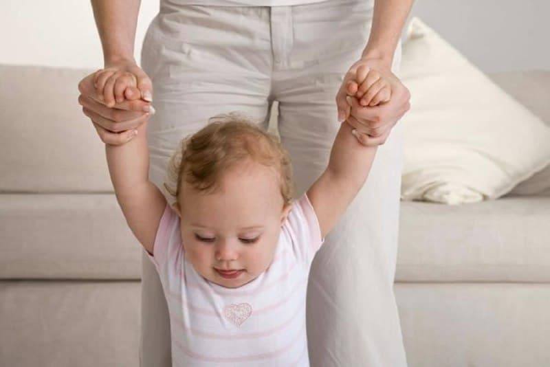 Если видите, что ребёнок уже держится на ногах и протягивает к вам руки, не стойте столбом, помогите ему. Не надо его подтягивать, и делать так, чтобы ребёнок виснул на ваших руках.