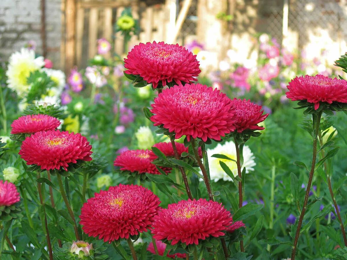 Алиссум, астра, бегония, гелениум, гeоргина, гипсофила, гладиолус, дельфиниум, ирис, канна, клематис, колокольчик, лилейник, лук, мак, пион, синюха, стахис, флокс, тысячелистник, хоста, гейхера, эдельвейс.