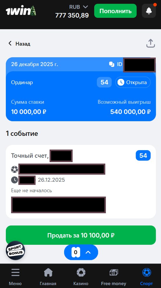 📹В видео — реальный отчёт с обновлением страницы в букмекерской конторе.