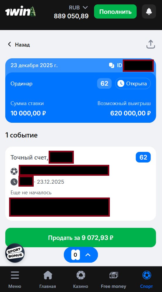 📹В видео — реальный отчёт с обновлением страницы в букмекерской конторе.