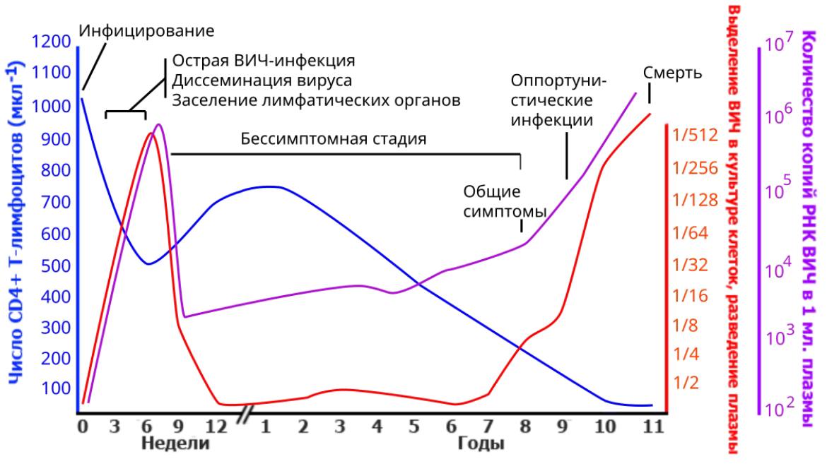 • Снижение CD4+ клеток: Постепенное уничтожение этих клеток ослабляет иммунную систему.