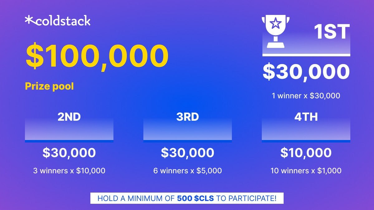• Самое интересное — ColdStack проведёт юбилейную лотерею с призовым фондом 100 000 долларов.