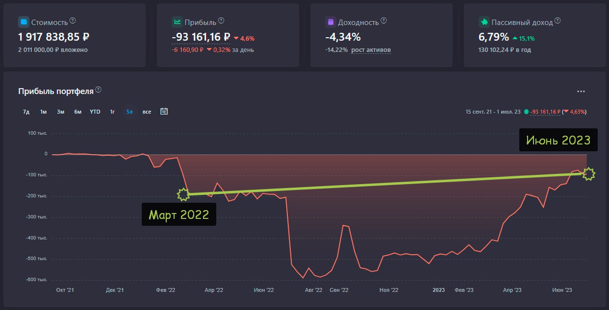 • Прибыль (рост стоимости акций + дивиденды): +122 348,85 ₽