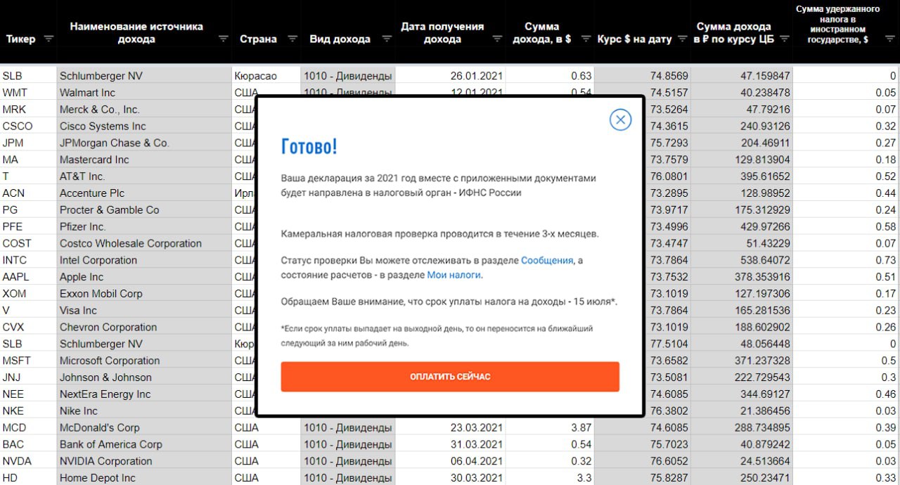 В 2021 году я получил 144 дивидендных выплаты, а сегодня я потратил несколько часов на заполнение налоговой декларации. Это ещё один из минусов сбора индекса S&P500 вручную, с которым не столкнется инвестор, портфель которого состоит из ETF.