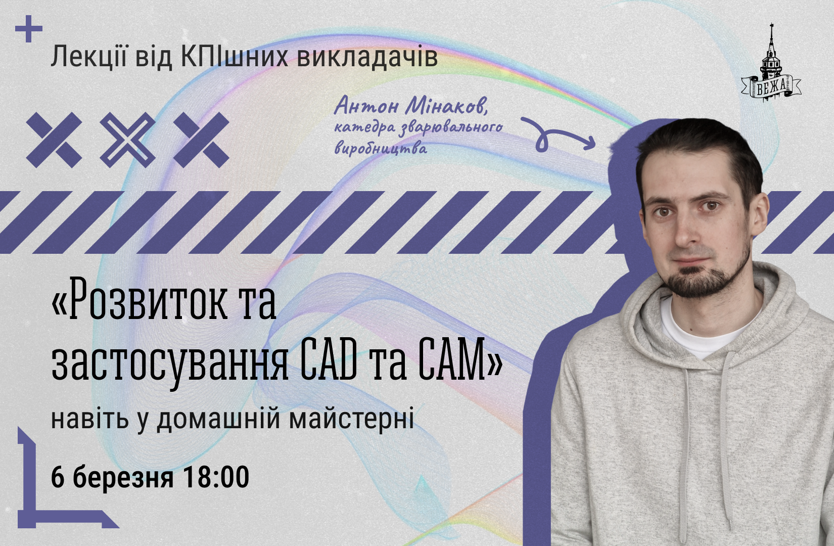 До лекторію «Вежі» завітає старший викладач кафедри зварювального виробництва, керівник гуртка «Smart Tech» Антон Мінаков з цікавим матеріалом про історію та еволюцію CAD та CAM. Він розповість, як автоматизувати проєктування та виготовлення деталей як на заводі, так і у домашній майстерні ✍️