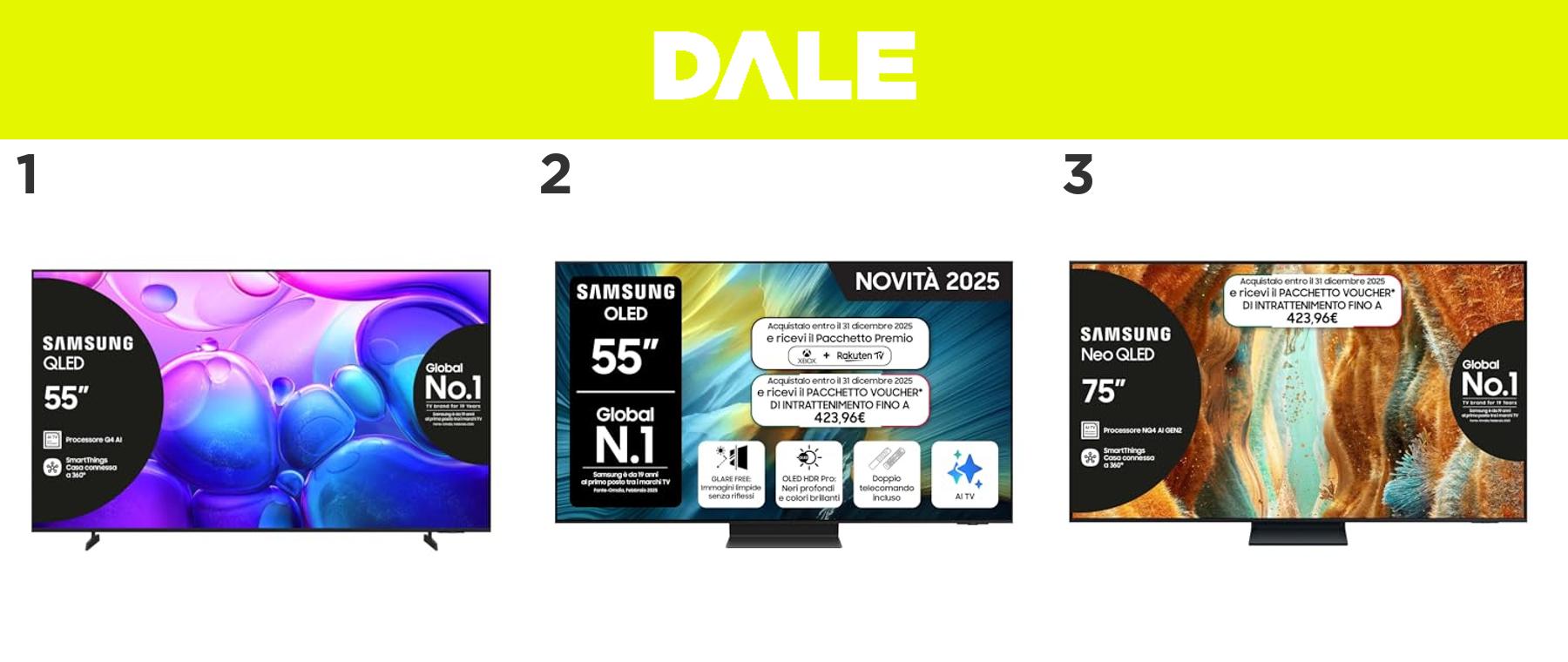 1) 👉🏻 Samsung TV QLED 55'' 4K, Pacchetto Intrattenimento 2025