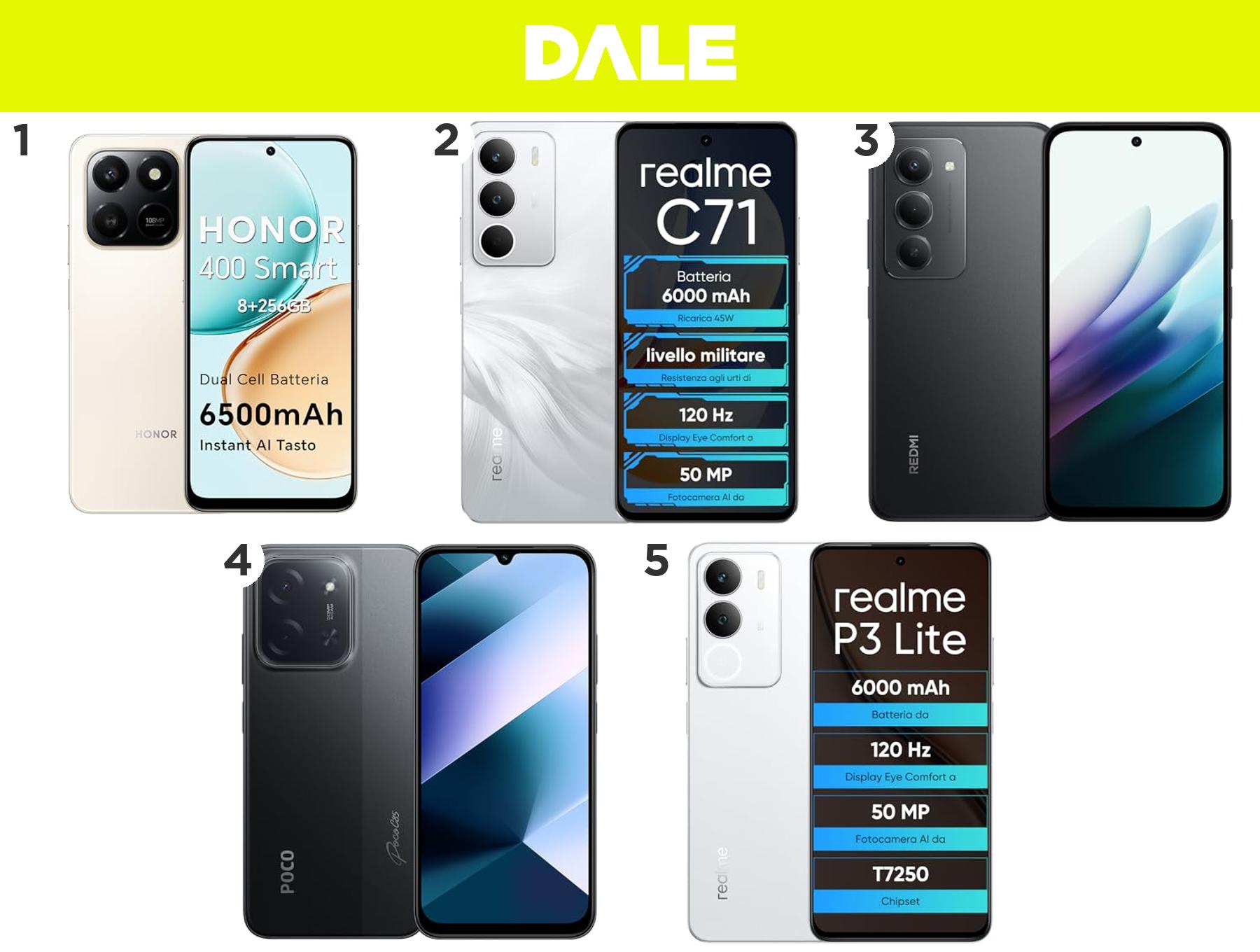 1) 👉🏻 HONOR 400 Smart 4G, 8+256GB, display 6.77", 108MP, batteria 6500mAh