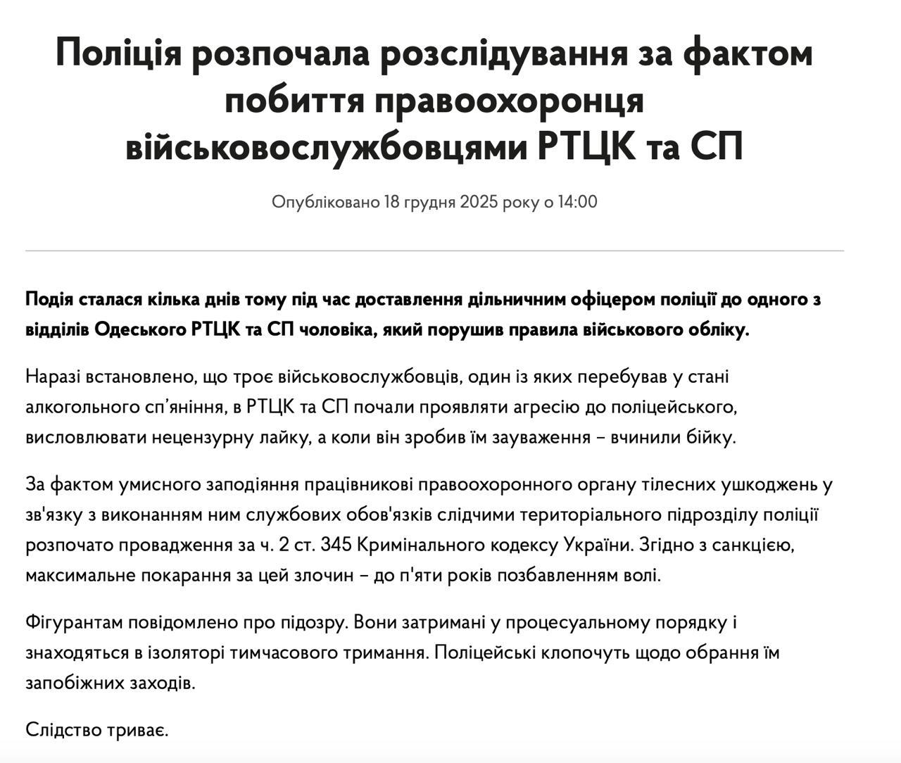 ❗️В Одесі 3 співробітники ТЦК, один з яких був п'яний, побили поліцейського, — Нацполіція.