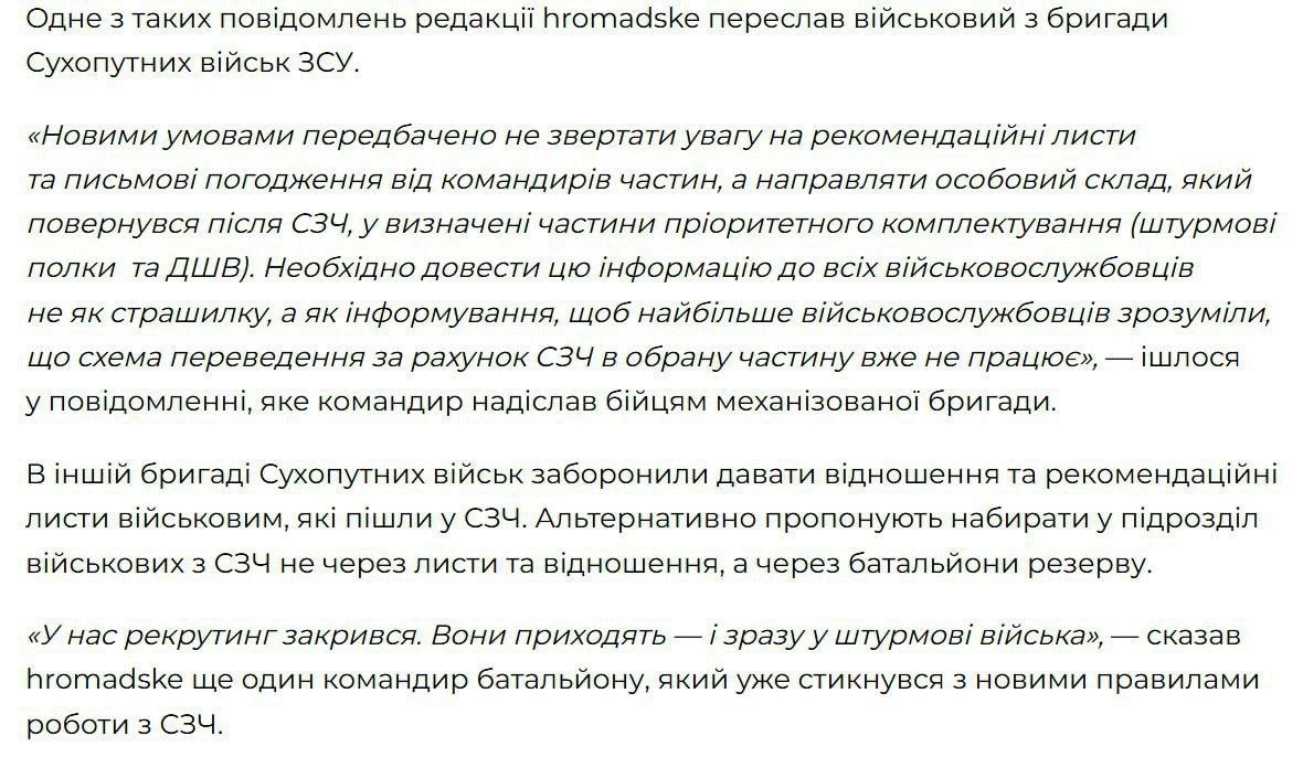 ❗️Повернутися з СЗЧ тепер можна тільки в десантно-штурмові війська або штурмові полки, — hromadske.