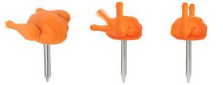 Выпрыгивающий термометр решает эту проблему. Он выпрыгивает при достижении рекомендованной Минсельхозом США температуры при приготовлении птицы в 74°С. Назвать этот прибор надёжным язык не повернётся, но если он сам в виде индейки, то дайте один, пожалуйста.