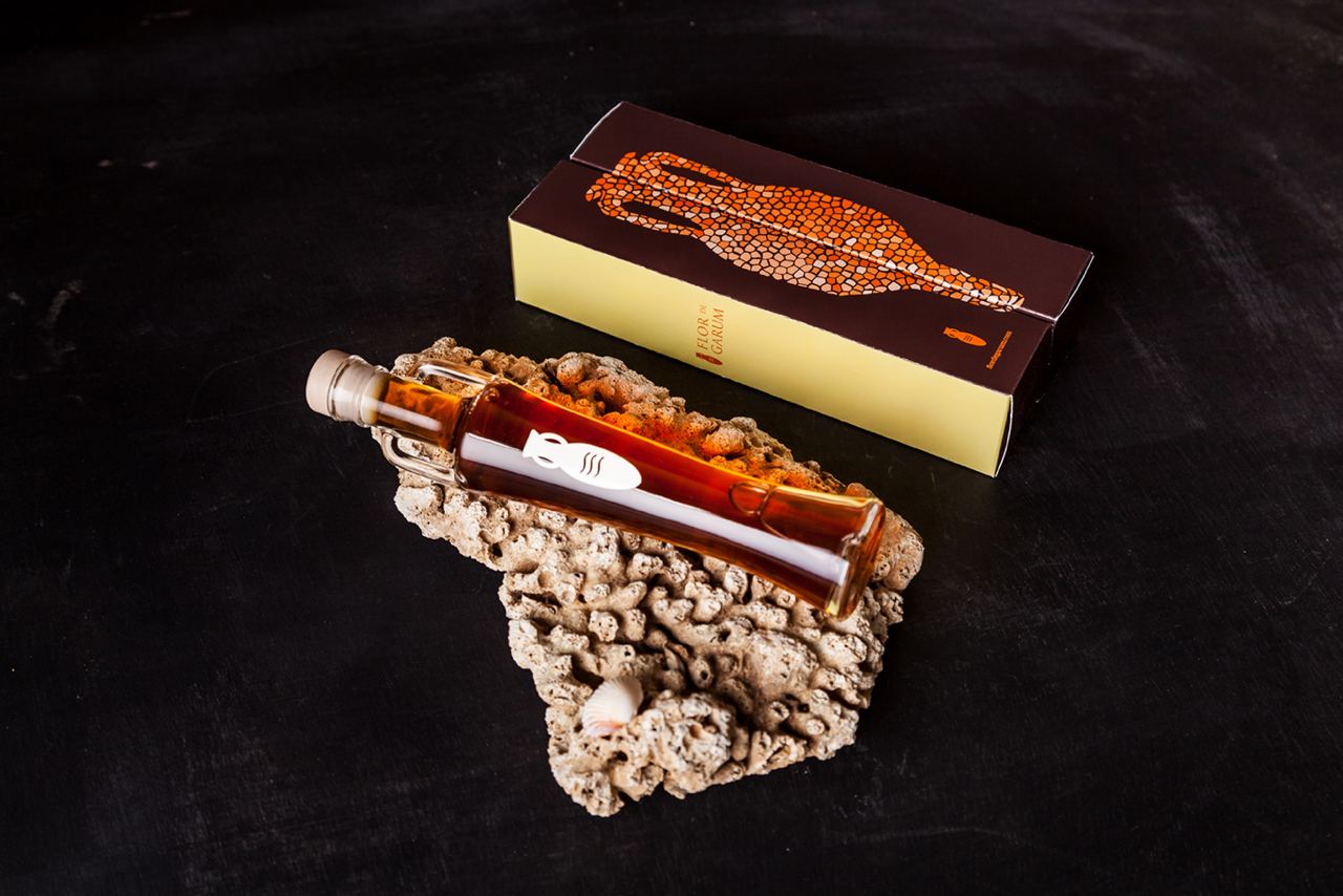 Называется эта бомба Flor de Garum, стоит больше 30$ за 100 мл, продаётся в стекле в виде амфоры. Забавно: в Помпеях гарум хранился в больших пузатых глиняных сосудах под названием долиум, но продавать всё равно решили в амфоре. Видать, она людям ближе и понятнее.