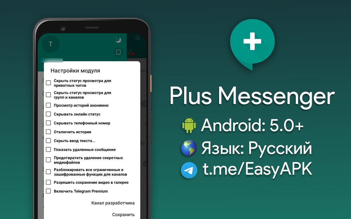 Plus Messenger — один из самых популярных сторонних клиентов для Telegram с дополнительными возможностями. #apps @EasyAPK