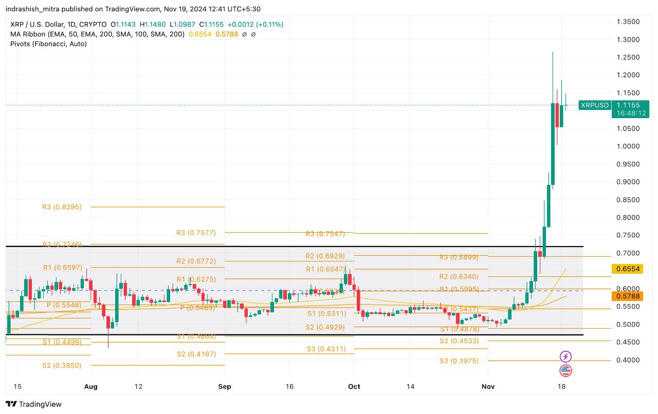 XRP has broken out of its long-standing range of $0.47 to $0.72, surging to $1.16 and briefly hitting a YTD high of $1.26. This marks its return to November 2021 levels, last seen during the previous crypto bull market. The rally follows Donald Trump’s U.S. presidential victory, fueling optimism for pro-crypto regulatory changes, including speculation about SEC Chair Gary Gensler’s resignation. Such developments have raised hopes for Ripple in its ongoing legal battle with the SEC. XRP now trades in a price zone unseen for three years, with potential resistance at psychological levels of $1.50 to $2. A breakout above $2 could open doors to significant bullish momentum in 2025. On the downside, the $1 mark, now a strong support level after flipping from resistance, is expected to provide stability for the altcoin, underscoring its renewed bullish trajectory.