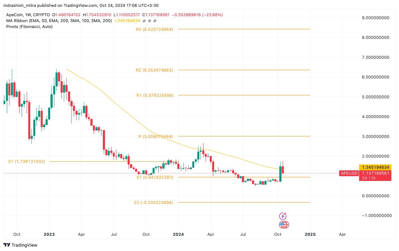 Apecoin's price surged as it aimed to breach a long-standing trend line that has resisted upward movement for over a year. The APE price successfully reclaimed the resistance zone between $2.39 and $2.61, following a parabolic curve pattern that could repeat in the near future. The Relative Strength Index also saw a notable increase but faced a setback before hitting the upper limit, indicating a possible minor retracement ahead. Should a pullback occur, the parabolic curve may provide robust support, potentially enabling the price to rise above the resistance zone in the coming days. Investors are keenly observing these developments, as they could signal an opportunity for further upward movement.