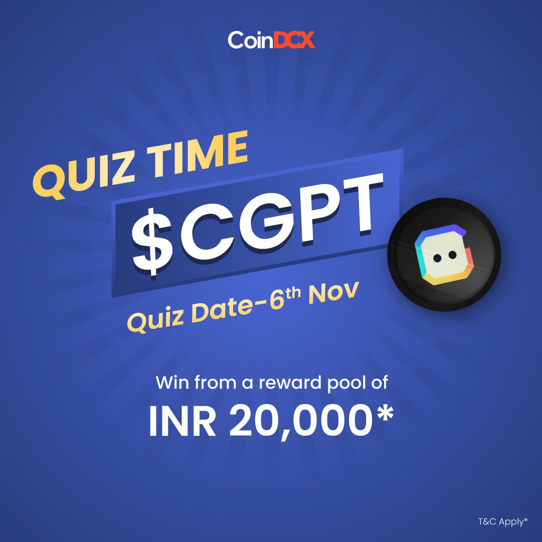 👉 Be sharp and quick! Ten lucky winners who answer all the questions right will share a whopping 20,000 INR worth $CGPT tokens reward pool.