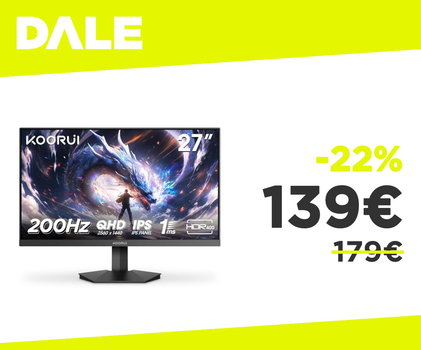 👉🏻 KOORUI Monitor Gaming 27" QHD 200Hz Fast IPS, HDR400, Adaptive Sync, VESA