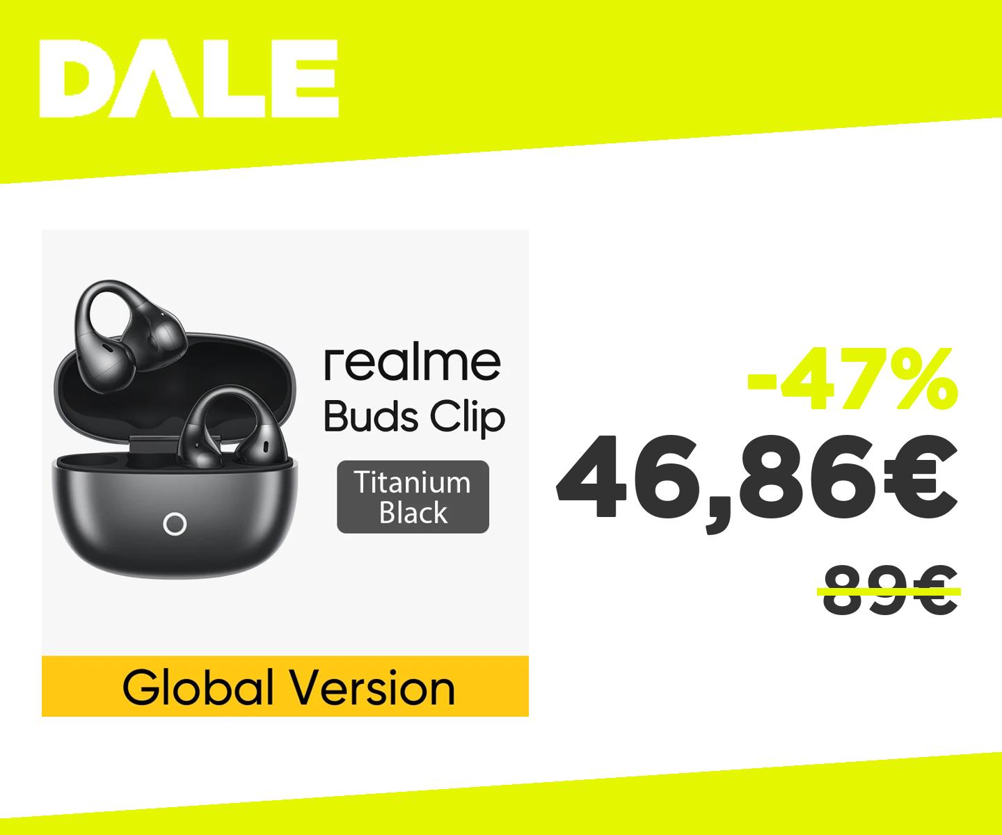 👉🏻 realme Buds Clip OWS Cuffie con clip auricolare AI ENC Chiamata Cancellazione del rumore Traduttore AI Fino a 36 ore Durata della batteria IP55 Bluetooth 5.4