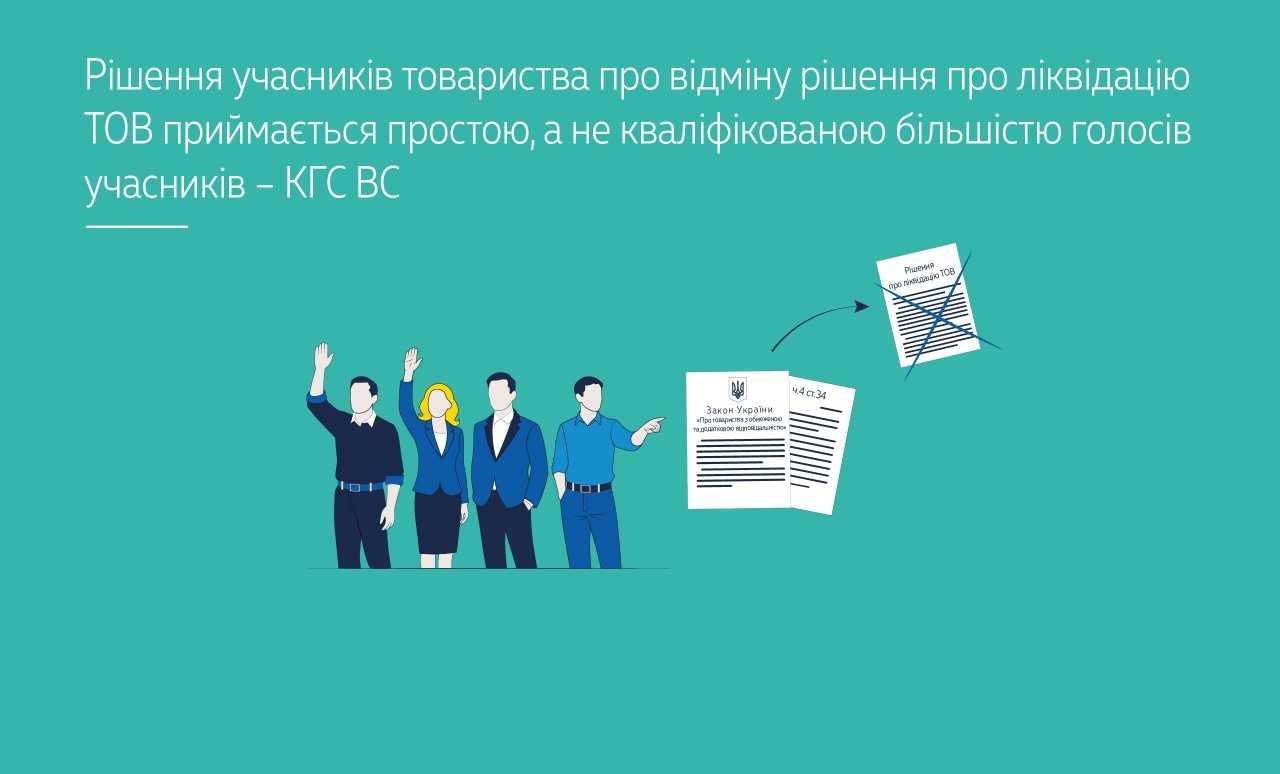 Рішення учасників товариства про відміну рішення про ліквідацію ТОВ приймається простою, а не кваліфікованою більшістю голосів учасників – КГС ВС