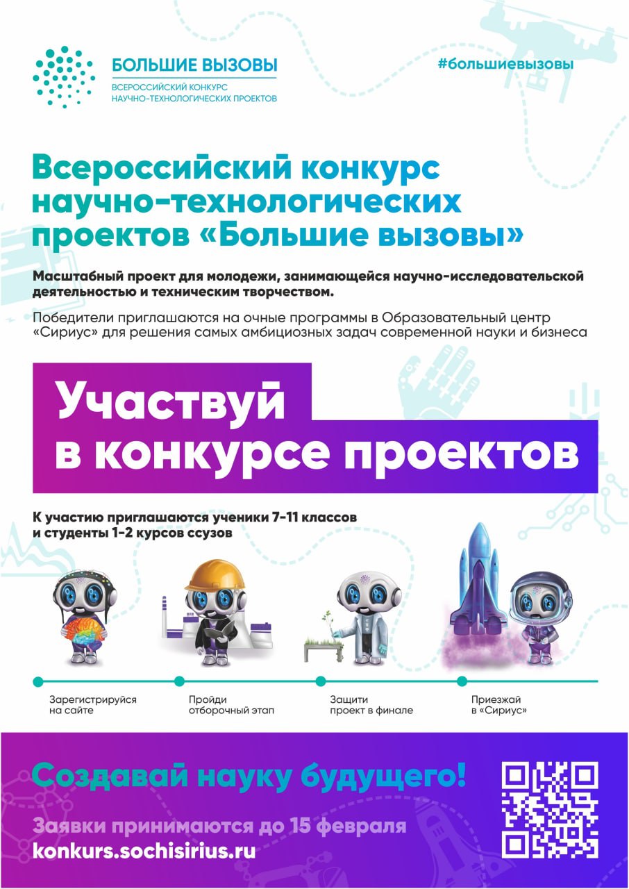 «Сириус» завершает прием заявок на Всероссийский конкурс научно-технологических проектов «Большие вызовы».