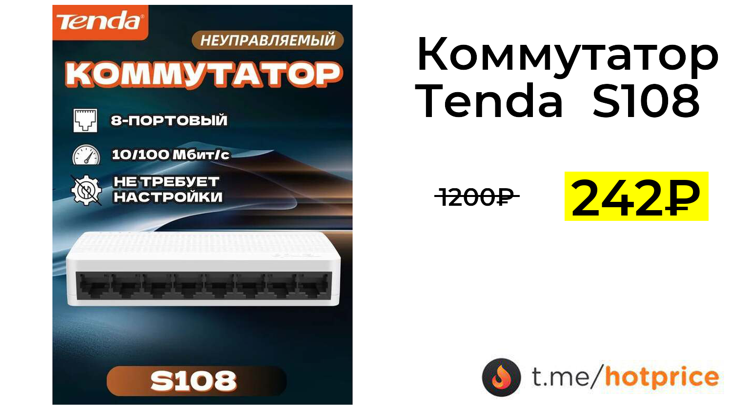 🔹 Коммутатор Tenda S108 (с картой OZON) за 242₽ ❗️ (везде: 1200+₽)